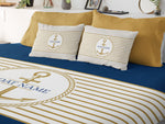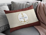 Decorated with an elegant anchor figure and horizontal stripes, you can customize this design by printing the name of your boat.
